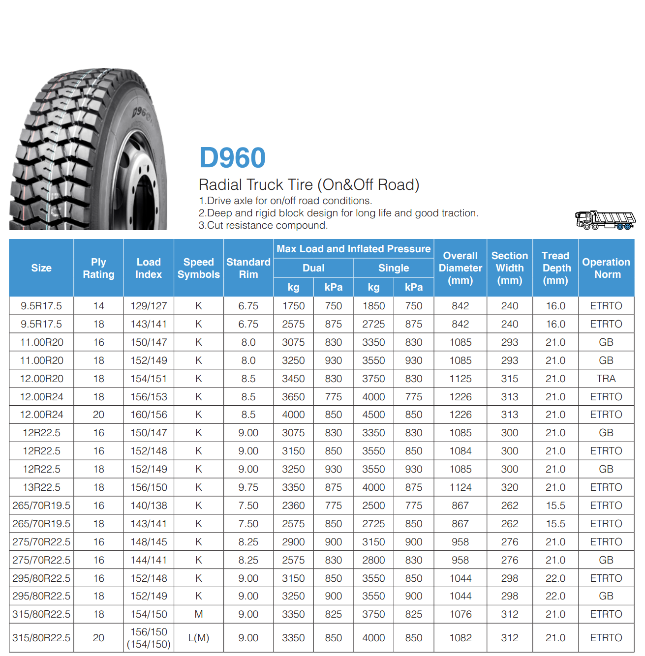 265/70R19.5 LINGLONG D960