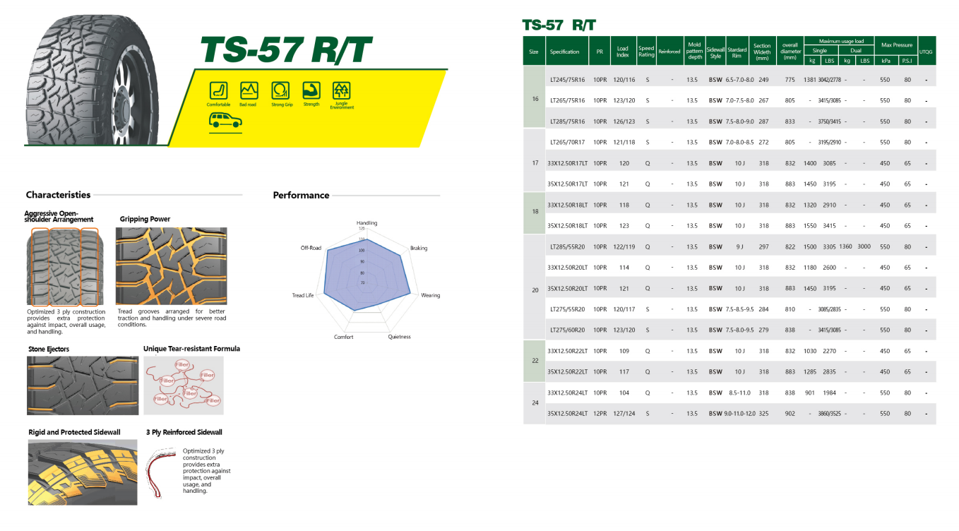 TBB tires TS-57 R/T 35x12.50R18LT 35x12.50/18LT 35x12.50-18LT 123Q