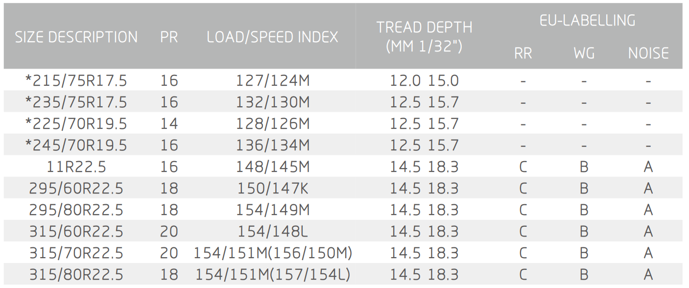 The LongTraxx AP600 from Landspider is a heavy-duty tire for semi-trucks, with a damage-resistant rubber formulation for long, even wear, multi-kerf design with stone ejectors built into the tread grooves, and a wide footprint for good handling and wear properties.