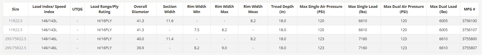 New tread and base compounds deliver long tread life minimizing heat generation, ensuring excellent retreadability while complying with EPA Smartway Rolling Resistance requirements.