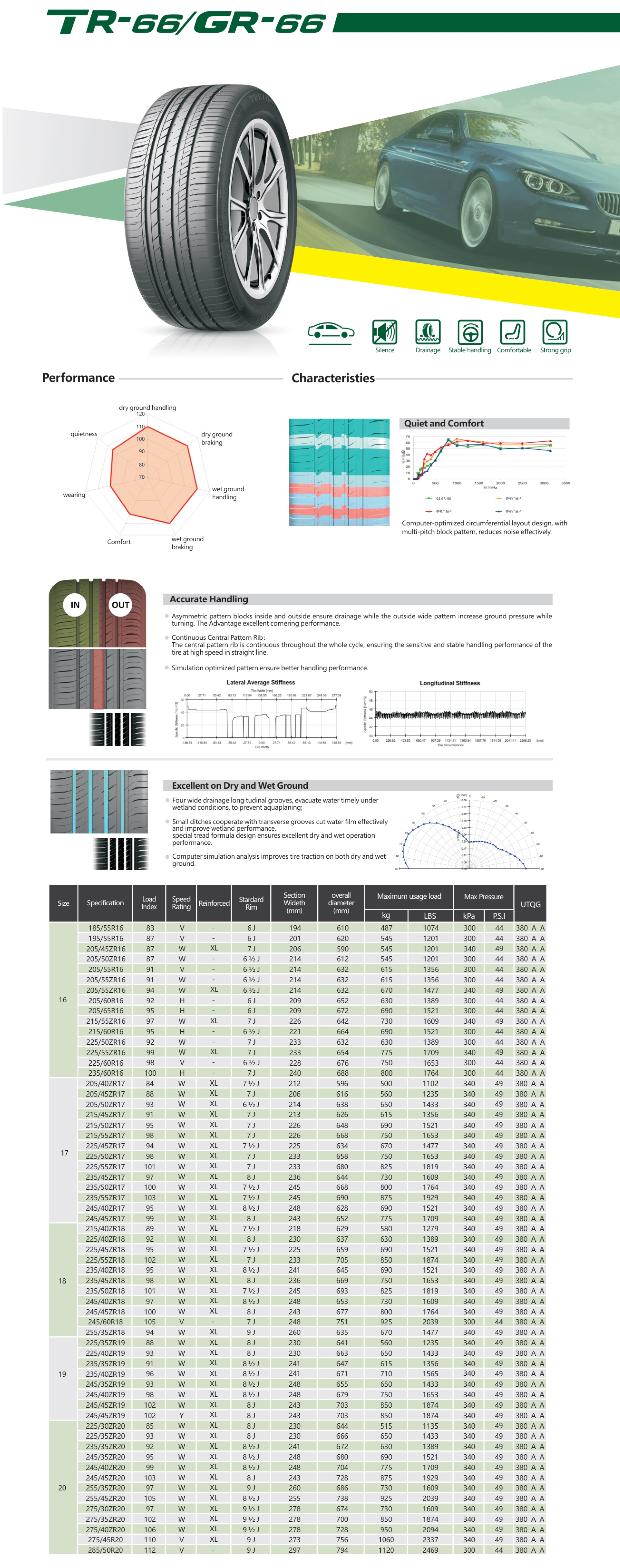 ·Special tread formulation boosts performance in wet and dry conditions