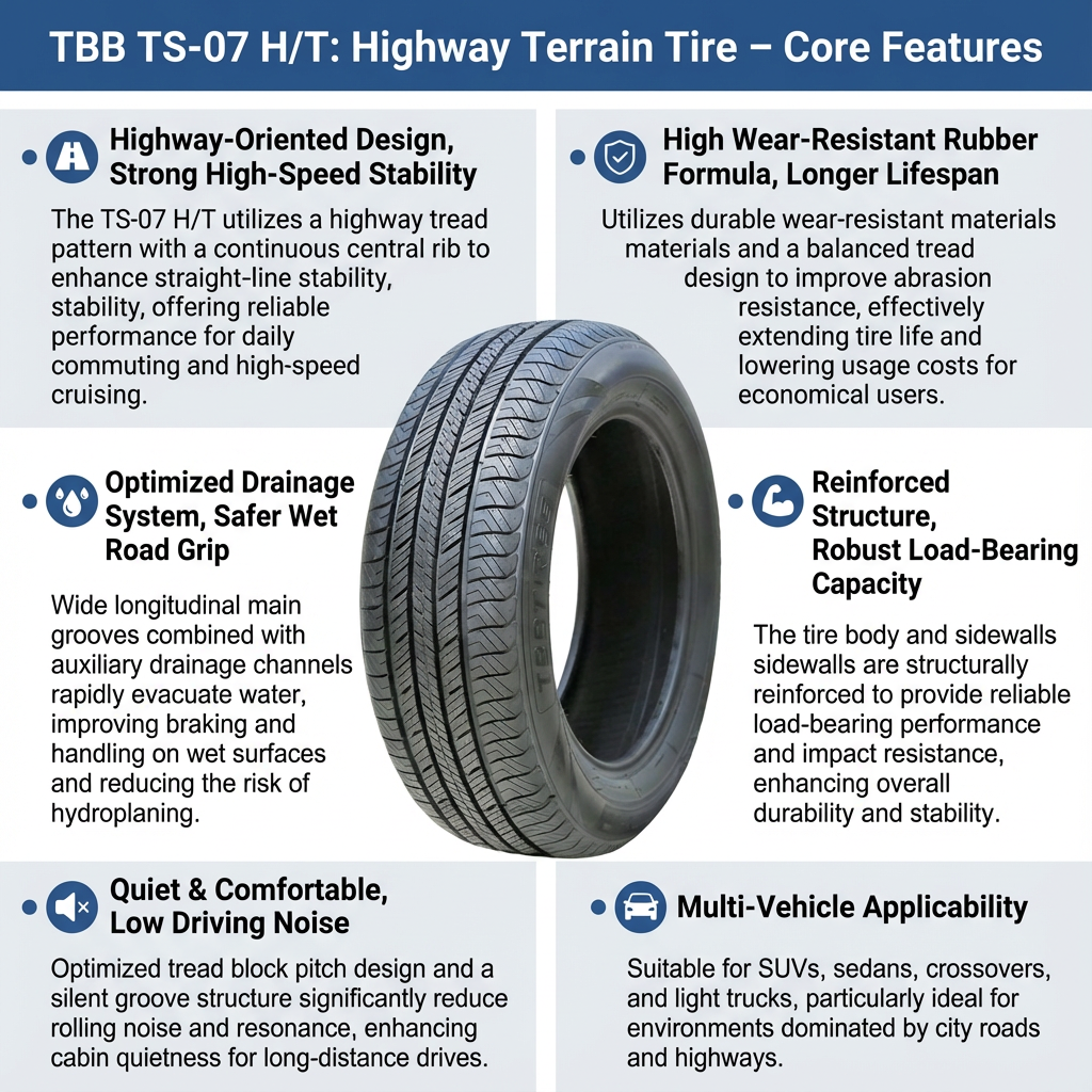 Just installed these TBB TS-07s on my Honda CR-V—and wow, the ride is *silky*. No more road noise ruining my lo-fi playlists. Plus, handled that surprise snow squall last week like it was nothing. All-season traction? More like all-situation confidence. Fuel economy bumped up 1.2 mpg too—my wallet says thanks 🙌