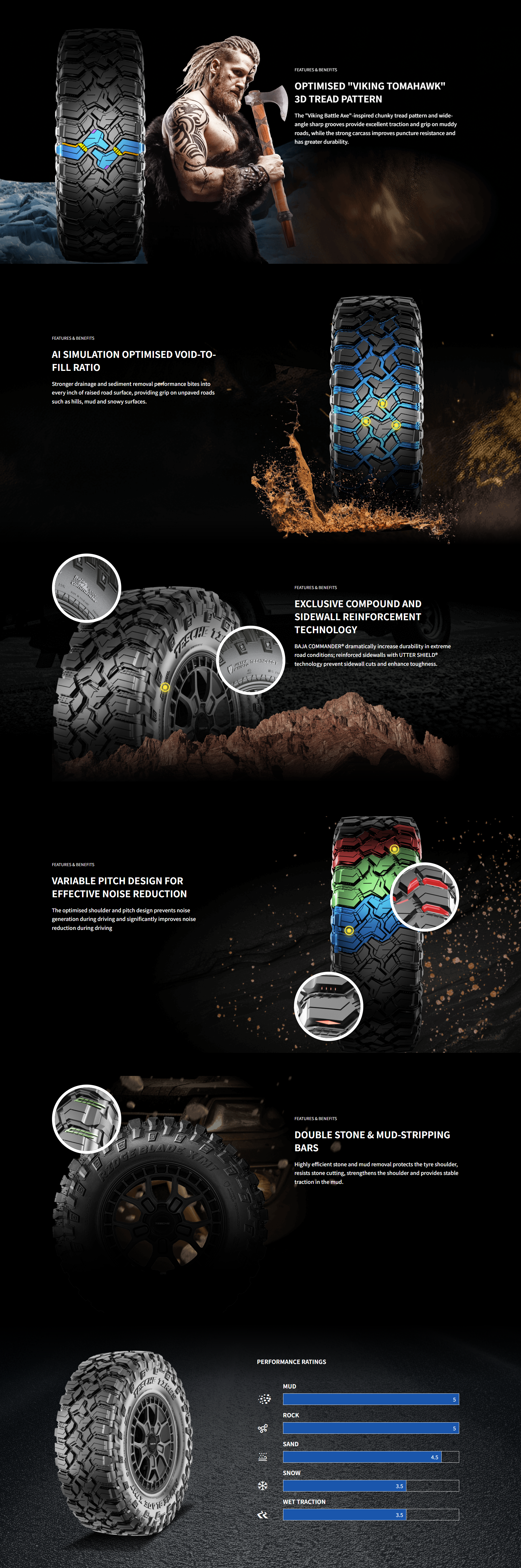 The TESCHE RIDGE BLADE X/MT is a quintessential Mud Terrain (mud-terrain) tire, with a design philosophy that prioritizes grip and durability in extreme conditions.