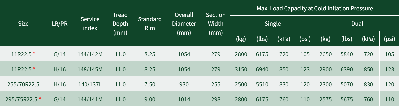 Reduces internal heat buildup, enhancing fuel efficiency and extending tread life.